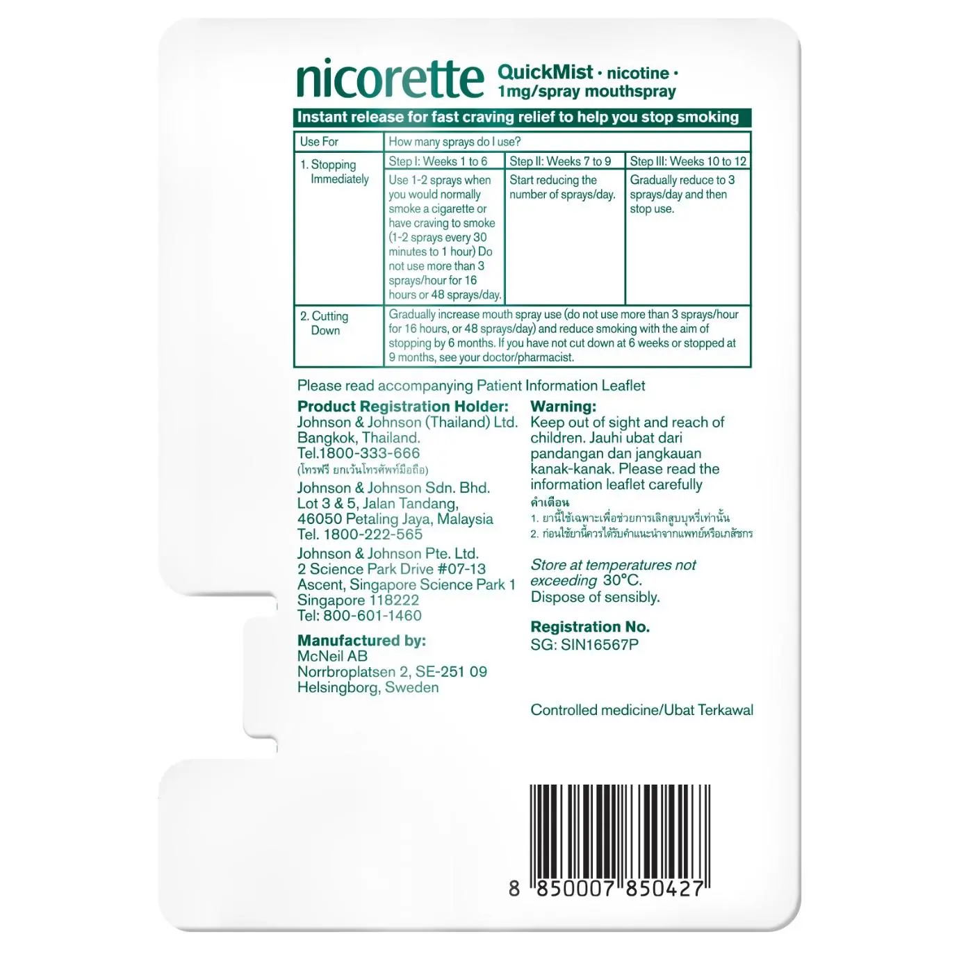 NICORETTE® QuickMist Spray contains a very small amount of alcohol, less than 100mg per spray.